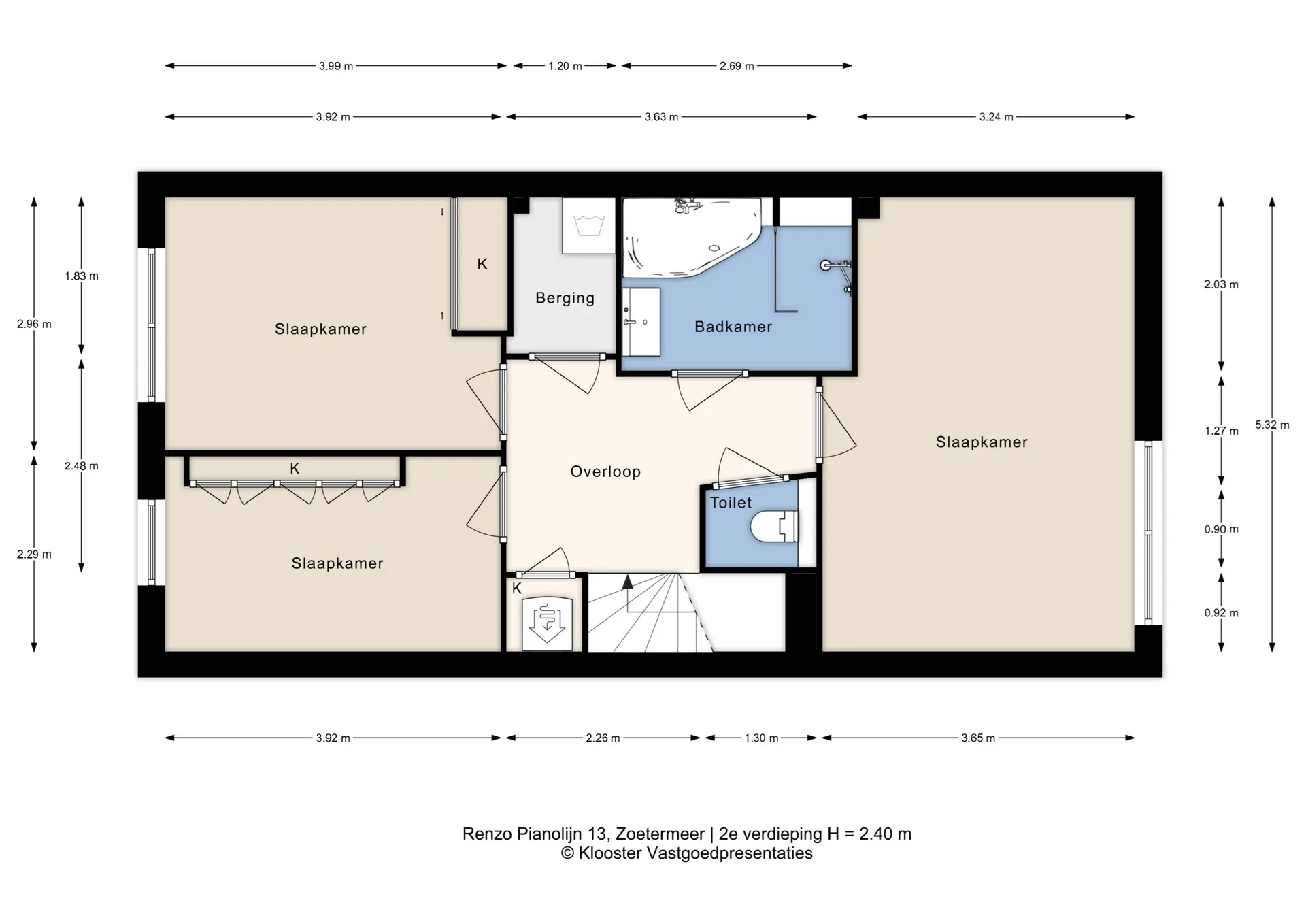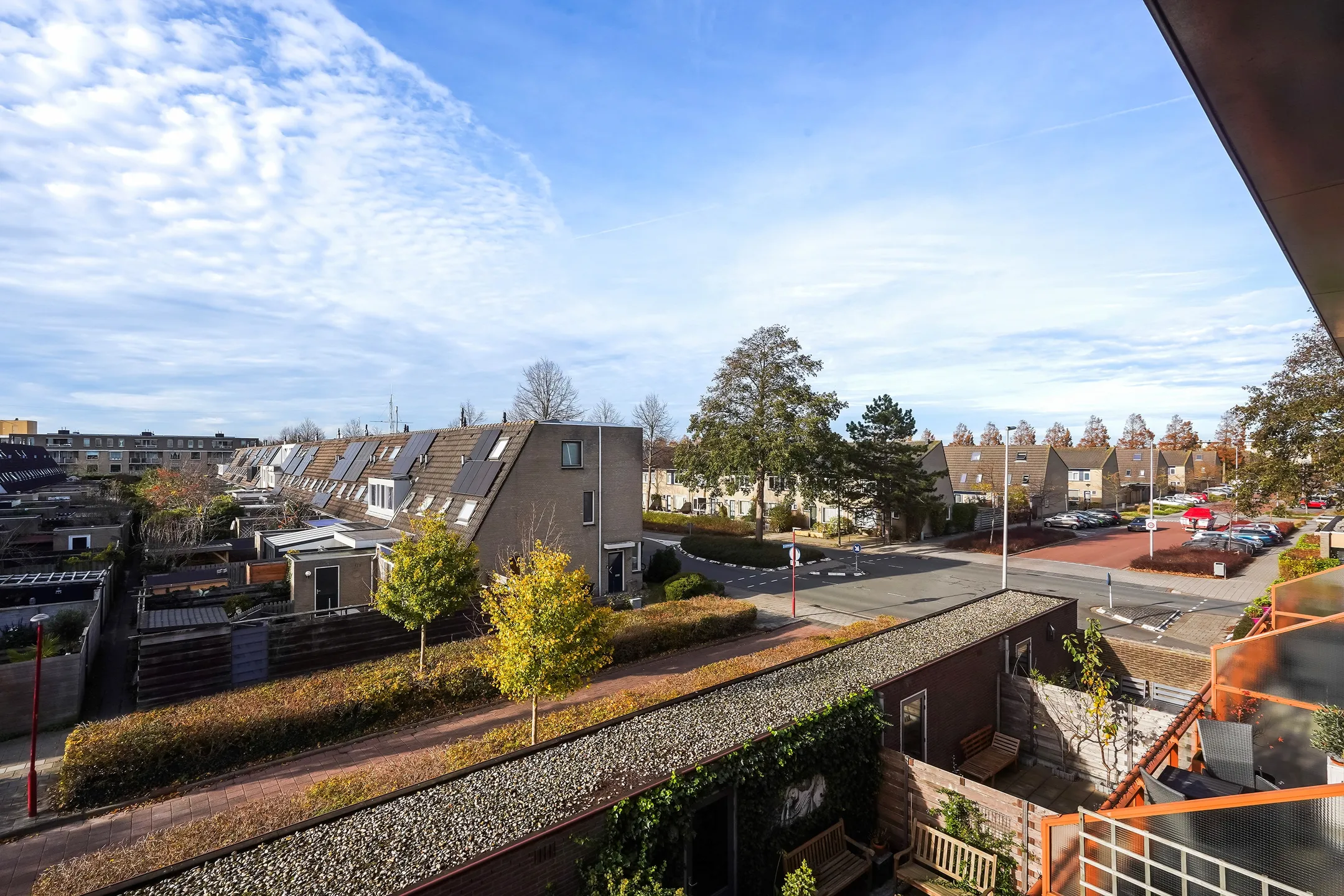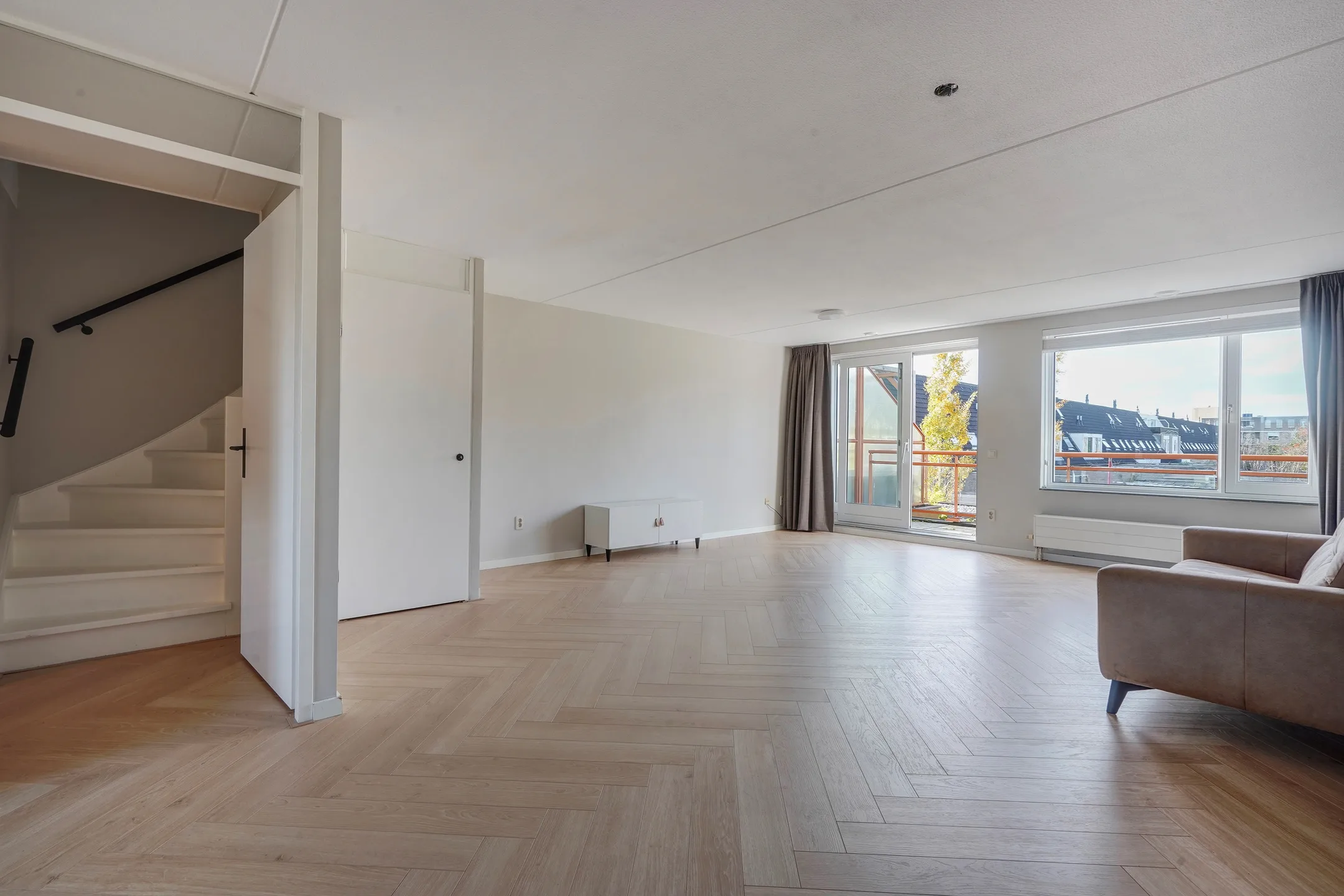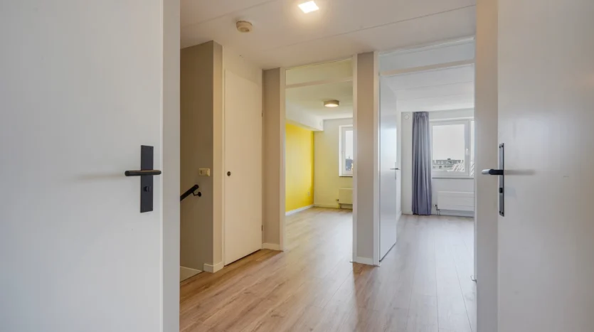 Op de begane grond bevindt zich een praktische multifunctionele ruimte met eigen entree, separaat toilet en twee royale kamers. De achterruimte beschikt over openslaande deuren naar de onderhoudsvriendelijke patiotuin en toegang tot de stenen (fiets)berging. Ideaal voor bijvoorbeeld werken aan huis, een praktijkruimte of zelfs als dubbele bewoning voor een ouder of thuiswonend kind. De eerste verdieping is verrassend ruim met een lichte woonkamer en aangrenzend zonneterras op het westen, waar je tot in de late uurtjes heerlijk van de zon kunt genieten. Aan de voorzijde vind je de half open keuken met moderne inbouwapparatuur en vrij uitzicht over de omgeving. De tweede verdieping biedt drie goed bemeten slaapkamers, een luxe badkamer en een aparte toiletruimte. De woning is bovendien uitstekend gelegen: direct tegenover winkelcentrum Noordhove, op loopafstand van basisscholen, het wijkpark, gezondheidscentrum én nabij het plassengebied aan de noordzijde van Zoetermeer. Indeling Begane grond Voortuin met parkeergelegenheid op eigen terrein (ruimte voor meerdere auto’s). Entree met ruime hal en separate toiletruimte. Via een tussenhal met trapopgang en meterkast toegang tot de eerste multifunctionele ruimte met vaste kast. Doorloop naar de tweede multifunctionele ruimte met openslaande deuren naar de patiotuin en toegang tot de stenen berging. Eerste verdieping Overloop met separate toiletruimte. Ruime, lichte woonkamer met schuifpui naar het dakterras op het westen met vrij uitzicht over groen en tuinen. De verdieping is luxe afgewerkt met een visgraatvloer en strak gestuukte wanden en plafonds. De moderne half open keuken aan de voorzijde is voorzien van inbouwapparatuur, waaronder een vaatwasser, afzuigkap en gaskookplaat. Tweede verdieping Ruime overloop met CV-kast. Royale master bedroom over de volle breedte van de woning. Luxe badkamer met inloop(regen)douche, ligbad, wastafelmeubel met spiegel én handdoekenradiator. Separate 3e toiletruimte en praktische, betegelde wasruimte. Twee extra slaapkamers aan de achterzijde, waarvan één met schuifdeurkast.