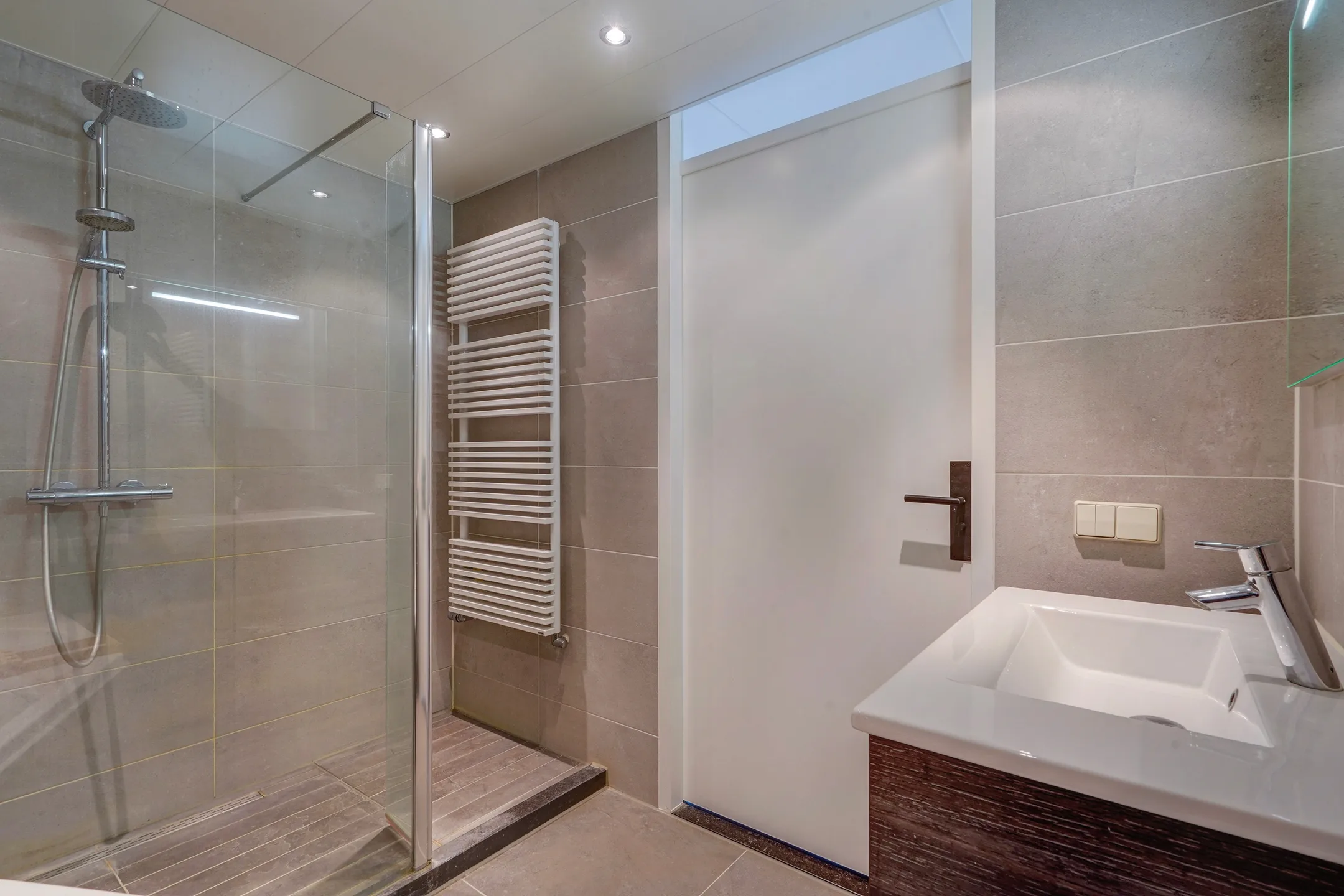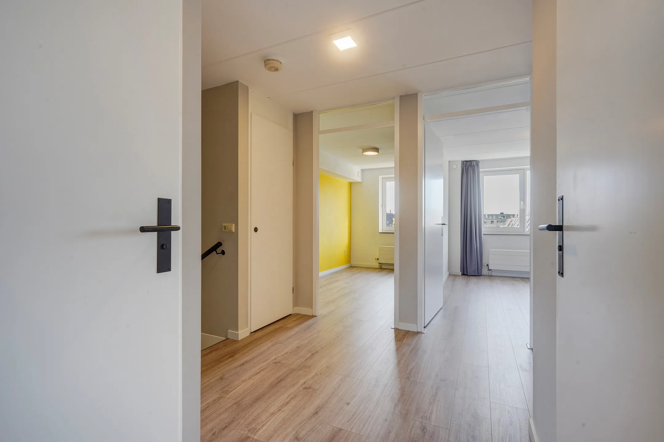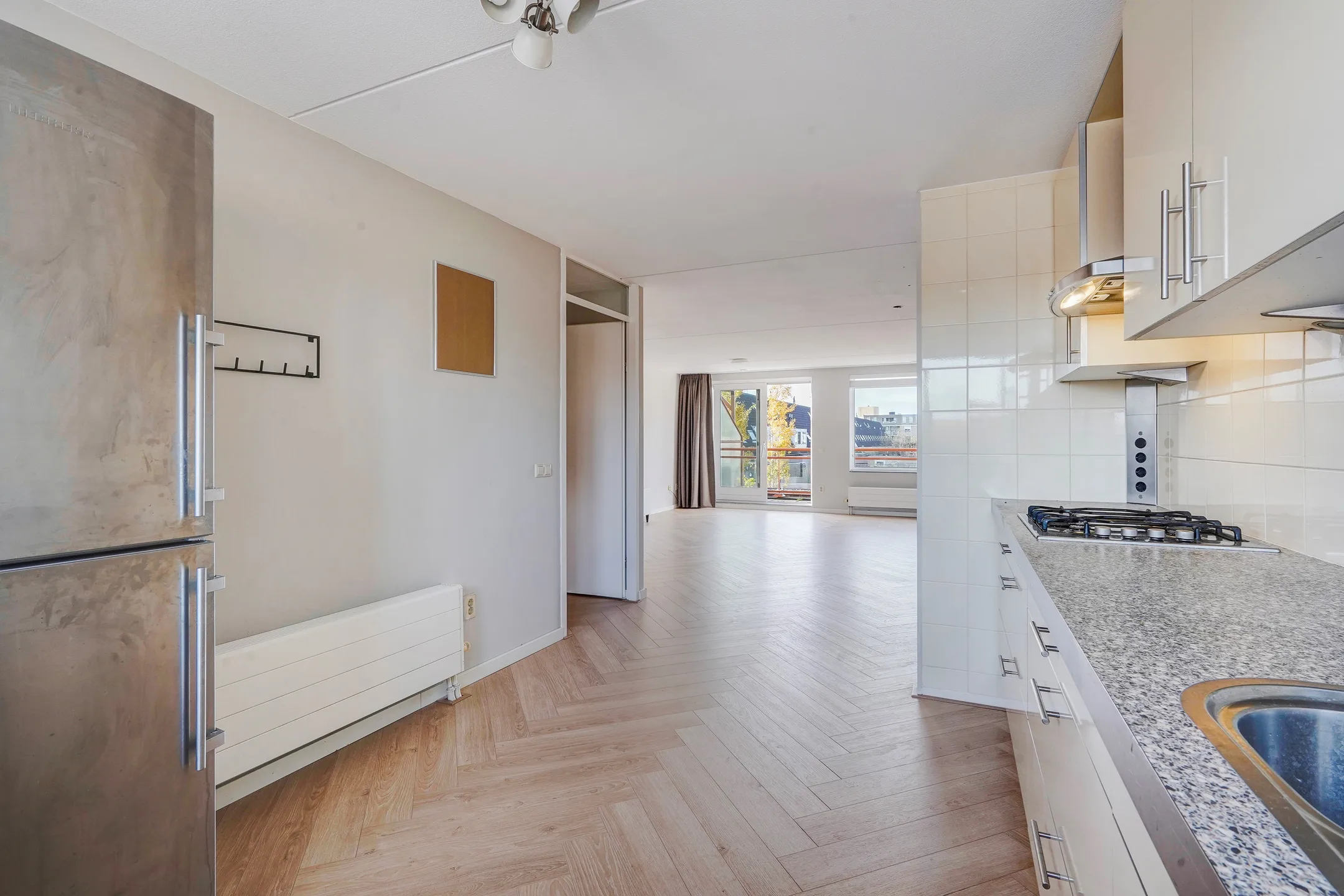 Op de begane grond bevindt zich een praktische multifunctionele ruimte met eigen entree, separaat toilet en twee royale kamers. De achterruimte beschikt over openslaande deuren naar de onderhoudsvriendelijke patiotuin en toegang tot de stenen (fiets)berging. Ideaal voor bijvoorbeeld werken aan huis, een praktijkruimte of zelfs als dubbele bewoning voor een ouder of thuiswonend kind. De eerste verdieping is verrassend ruim met een lichte woonkamer en aangrenzend zonneterras op het westen, waar je tot in de late uurtjes heerlijk van de zon kunt genieten. Aan de voorzijde vind je de half open keuken met moderne inbouwapparatuur en vrij uitzicht over de omgeving. De tweede verdieping biedt drie goed bemeten slaapkamers, een luxe badkamer en een aparte toiletruimte. De woning is bovendien uitstekend gelegen: direct tegenover winkelcentrum Noordhove, op loopafstand van basisscholen, het wijkpark, gezondheidscentrum én nabij het plassengebied aan de noordzijde van Zoetermeer. Indeling Begane grond Voortuin met parkeergelegenheid op eigen terrein (ruimte voor meerdere auto’s). Entree met ruime hal en separate toiletruimte. Via een tussenhal met trapopgang en meterkast toegang tot de eerste multifunctionele ruimte met vaste kast. Doorloop naar de tweede multifunctionele ruimte met openslaande deuren naar de patiotuin en toegang tot de stenen berging. Eerste verdieping Overloop met separate toiletruimte. Ruime, lichte woonkamer met schuifpui naar het dakterras op het westen met vrij uitzicht over groen en tuinen. De verdieping is luxe afgewerkt met een visgraatvloer en strak gestuukte wanden en plafonds. De moderne half open keuken aan de voorzijde is voorzien van inbouwapparatuur, waaronder een vaatwasser, afzuigkap en gaskookplaat. Tweede verdieping Ruime overloop met CV-kast. Royale master bedroom over de volle breedte van de woning. Luxe badkamer met inloop(regen)douche, ligbad, wastafelmeubel met spiegel én handdoekenradiator. Separate 3e toiletruimte en praktische, betegelde wasruimte. Twee extra slaapkamers aan de achterzijde, waarvan één met schuifdeurkast.