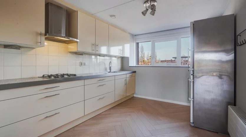 Bijzonderheden – Bouwjaar: 2002 – Woonoppervlakte: 187 m² – Perceel: 147 m² eigen grond – Energielabel: A – Aantal kamers: 5 (inclusief 3 slaapkamers + 2 multifunctionele kamers) – Multifunctioneel object: ideaal voor wonen en werken of dubbele bewoning – Twee huisnummers (13 en 15) i.v.m. gecombineerde woon-/werkmogelijkheden – Moderne keuken en luxe badkamer + 3 toiletruimtes – Patio én dakterras op het westen – Eigen parkeergelegenheid (geschikt voor 2 auto’s) – Woningbrede stenen (fietsen)berging – Uitstekend bereikbaar: tegenover winkelcentrum Noordhove, dichtbij OV, scholen, zorgvoorzieningen en park – Groen en recreatie nabij: plassengebied (loopafstand) en wijkpark direct naast de woning – Aanvaarding: kan per direct Enthousiast geworden naar deze woning? Neem dan meteen contact op voor een bezichtiging! Indeling Aan de voorzijde liggen de voortuin en de eigen parkeerplaatsen voor één tot twee auto’s. De entreehal is ruim opgezet en beschikt over een toiletruimte. Vanuit hier kom je in de tussenhal met meterkast en trapopgang naar de eerste verdieping. De eerste kamer op deze etage is voorzien van een vaste kast en staat in verbinding met de tweede, aan de achterzijde gelegen ruimte met openslaande deuren naar de patiotuin. Eerste verdieping De overloop geeft toegang tot een separate toiletruimte en de royale woonkamer. Deze sfeervolle leefruimte heeft een schuifpui naar het zonnige dakterras op het westen, waar je tot in de avond kunt genieten van de zon en het uitzicht over de tuinen en het park. De gehele verdieping is afgewerkt met een elegante visgraatvloer en strak gestuukte wanden en plafonds. De moderne halfopen keuken aan de voorzijde is voorzien van diverse inbouwapparatuur, waaronder een vaatwasser, gaskookplaat en afzuigkap. Vanuit de keuken heb je vrij zicht over het parkeerterrein aan de voorzijde. Tweede verdieping Ruime overloop, kast met CV-combiketel. Woning brede master bedroom aan de voorzijde. Luxe badkamer met ruime inloop(regen)douche, een ligbad, een wastafelmeubel met spiegel en een handdoekenradiator. Er is een separaat 3e toilet en een praktische, betegelde wasruimte. Aan de achterzijde liggen de overige 2 slaapkamers waarvan één met schuifdeurkast.