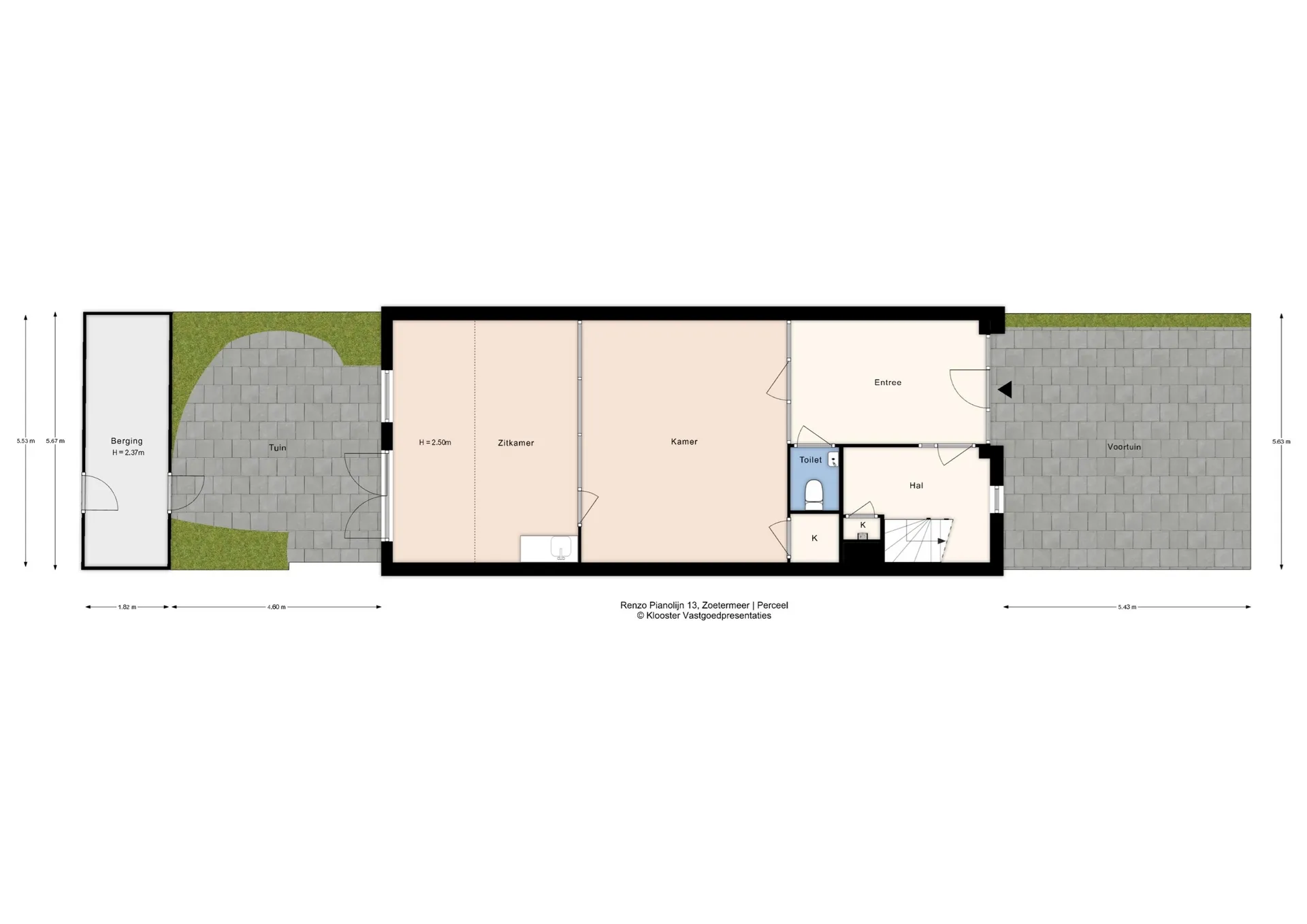 Bijzonderheden Perceeloppervlak: 147 m² eigen grond Woonoppervlakte: circa 187 m² Geschikt voor combinatie van wonen en werken of dubbele bewoning Twee huisnummers (13 en 15) door de gescheiden gebruiksmogelijkheden Begane grond eenvoudig om te vormen tot zelfstandige woonruimte (zie alternatieve plattegrond) Luxe badkamer, moderne keuken en drie toiletten Patio en royaal dakterras op het westen Eigen parkeerplaatsen voor twee auto’s Stenen berging over de volle breedte van de woning Oplevering in overleg